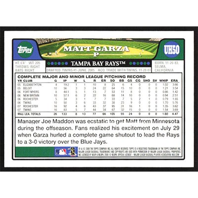 This is a 2008 Topps Update Matt Garza baseball card. The card is #UH50 and pictures show condition.