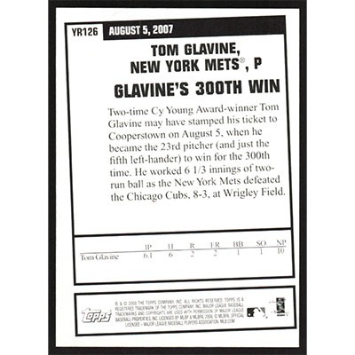 This is a 2008 Topps Year in Review Tom Glavine baseball card. The card is #YR126 and pictures show condition.