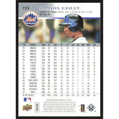 This is a 2008 Upper Deck Damion Easley baseball card. The card is #159 and pictures show condition.
