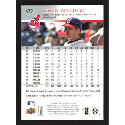 This is a 2008 Upper Deck David Dellucci baseball card. The card is #479 and pictures show condition.