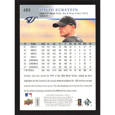 This is a 2008 Upper Deck David Eckstein baseball card. The card is #683 and pictures show condition.