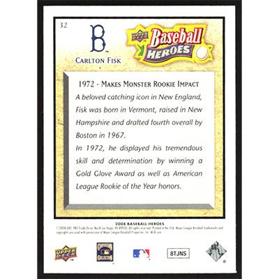 This is a 2008 Upper Deck Baseball Heroes Carlton Fisk baseball card. The card is #32 and pictures show condition.