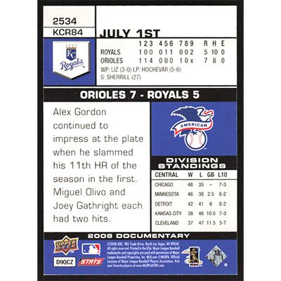 This is a 2008 Upper Deck Documentary David DeJesus baseball card. The card is #2534 and pictures show condition.