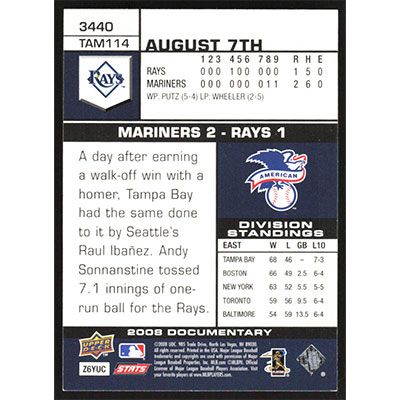 This is a 2008 Upper Deck Documentary Carl Crawford baseball card. The card is #3440 and pictures show condition.