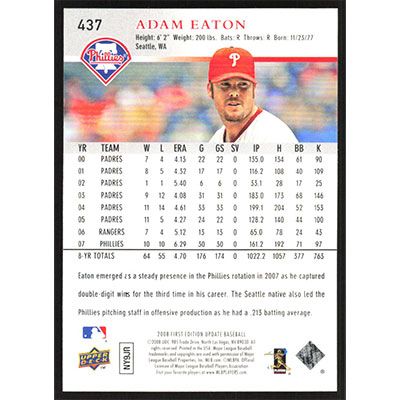 This is a 2008 Upper Deck First Edition Adam Eaton baseball card. The card is #437 and pictures show condition.
