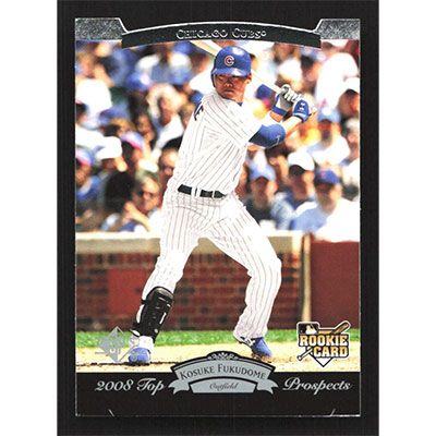 This is a 2008 Upper Deck Timeline Kosuke Fukudome 1995 SP Top Prospects Die Cut baseball card. The card is #199 and pictures show condition. Team(s): Chicago Cubs Rookie Card (RC)