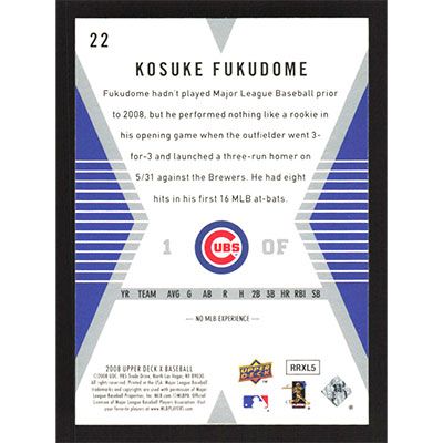 This is a 2008 Upper Deck X Kosuke Fukudome baseball card. The card is #22 and pictures show condition.