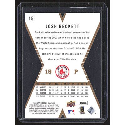 This is a 2008 Upper Deck X Die Cut Gold Josh Beckett baseball card. The card is #15 and pictures show condition.