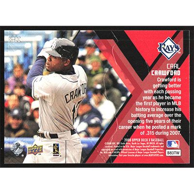 This is a 2008 Upper Deck X Xponential Carl Crawford baseball card. The card is #X-CC and pictures show condition.