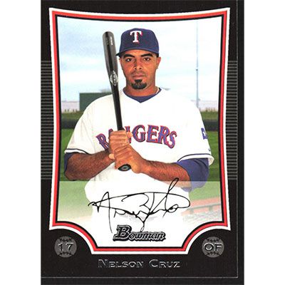 This is a 2009 Bowman Nelson Cruz baseball card. The card is #111 and pictures show condition.