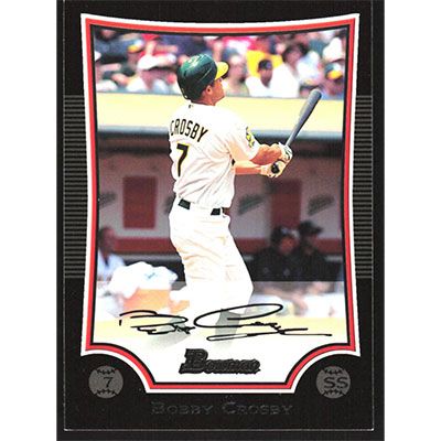 This is a 2009 Bowman Bobby Crosby baseball card. The card is #133 and pictures show condition.