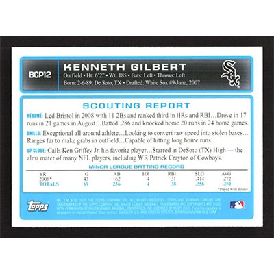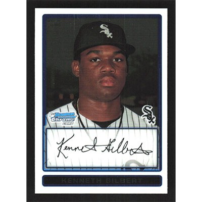 This is a 2009 Bowman Chrome Prospects Kenneth Gilbert baseball card. The card is #BCP12 and pictures show condition.