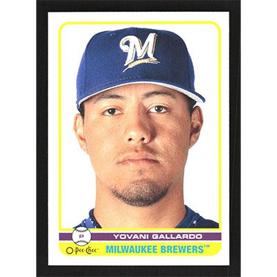 This is a 2009 O-Pee-Chee Yovani Gallardo baseball card. The card is #403 and pictures show condition.