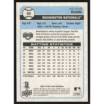 This is a 2009 O-Pee-Chee Adam Dunn baseball card. The card is #60 and pictures show condition.