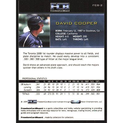 This is a 2009 Razor FCB National Convention David Cooper baseball card. The card is #FCB-2 and pictures show condition.