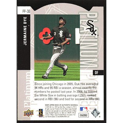This is a 2009 SP Authentic Platinum Power Jermaine Dye baseball card. The card is #PP-30 and pictures show condition.