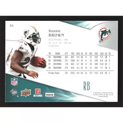 This is a 2009 SP Authentic Retail Ronnie Brown football card. The card is #50 and pictures show condition.
