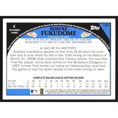 This is a 2009 Topps Kosuke Fukudome baseball card. The card is #150 and pictures show condition.