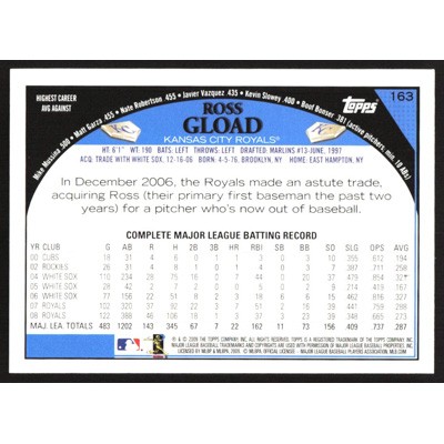 This is a 2009 Topps Ross Gload baseball card. The card is #163 and pictures show condition.