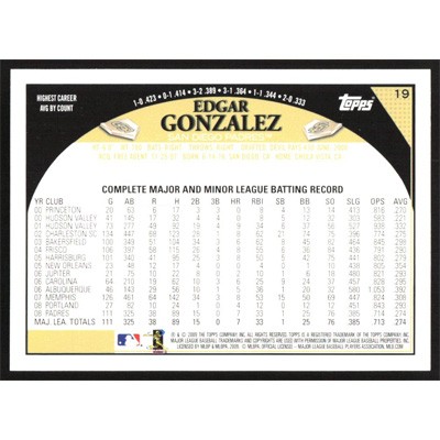 This is a 2009 Topps Edgar Gonzalez baseball card. The card is #19 and pictures show condition.