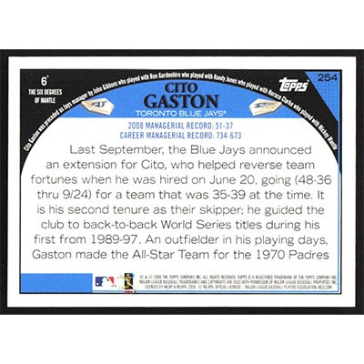 This is a 2009 Topps Cito Gaston baseball card. The card is #254 and pictures show condition.