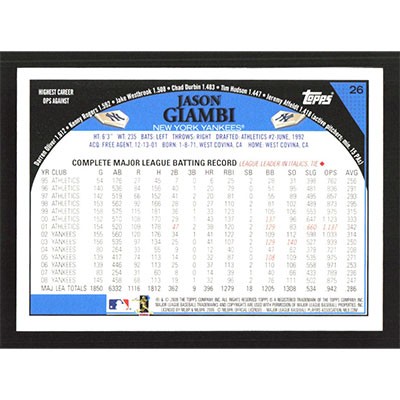 This is a 2009 Topps Jason Giambi baseball card. The card is #26 and pictures show condition.