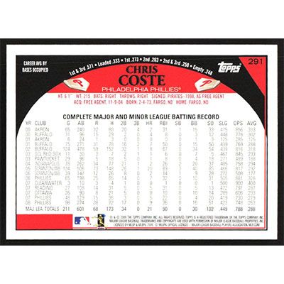 This is a 2009 Topps Chris Coste baseball card. The card is #291 and pictures show condition.