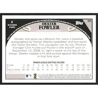 This is a 2009 Topps Dexter Fowler baseball card. The card is #96 and pictures show condition.