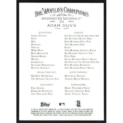 This is a 2009 Topps Allen & Ginter Adam Dunn baseball card. The card is #214 and pictures show condition.