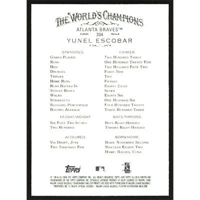 This is a 2009 Topps Allen & Ginter Yunel Escobar short print baseball card. The card is #304 and pictures show condition.