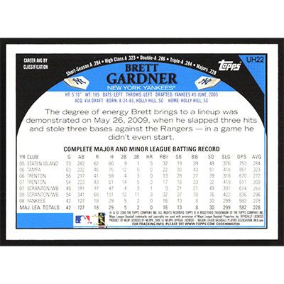 This is a 2009 Topps Update Brett Gardner baseball card. The card is #UH22 and pictures show condition.