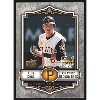 This is a 2009 UD A Piece of History Luis Cruz baseball card. The card is #112 and pictures show condition. Team(s): Pittsburgh Pirates Rookie Card (RC)
