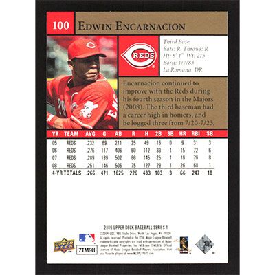 This is a 2009 Upper Deck Edwin Encarnacion baseball card. The card is #100 and pictures show condition.