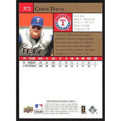 This is a 2009 Upper Deck Chris Davis baseball card. The card is #372 and pictures show condition.
