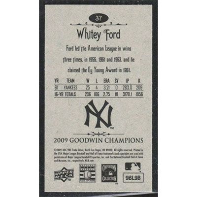 This is a 2009 Upper Deck Goodwin Champions Mini Whitey Ford baseball card. The card is #37 and pictures show condition.
