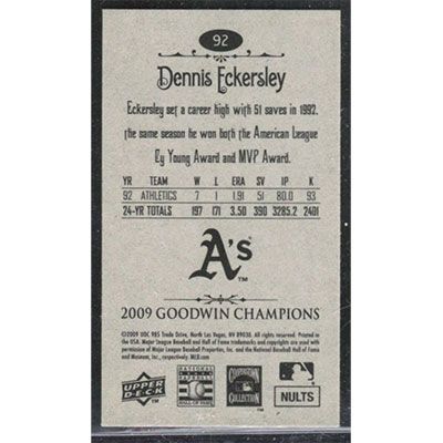 This is a 2009 Upper Deck Goodwin Champions Mini Dennis Eckersley baseball card. The card is #92 and pictures show condition.