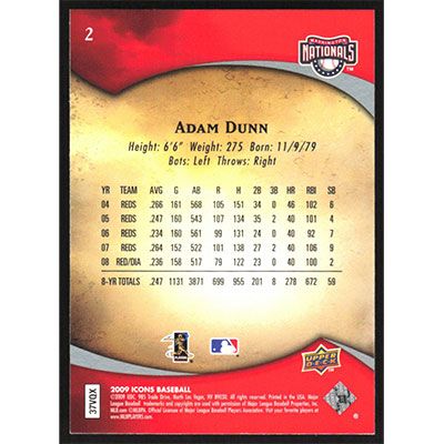This is a 2009 Upper Deck Icons Adam Dunn baseball card. The card is #2 and pictures show condition.