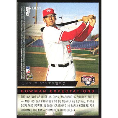 This is a 2010 Bowman Expectations Adam Dunn and Chris Marrero baseball card. The card is #BE21 and pictures show condition. Team(s): Washington Nationals