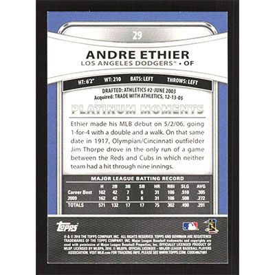 This is a 2010 Bowman Platinum Andre Ethier baseball card. The card is #29 and pictures show condition.