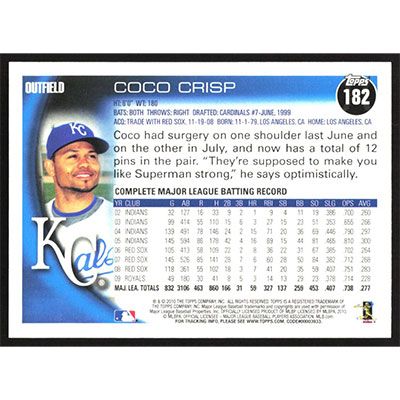 This is a 2010 Topps Coco Crisp baseball card. The card is #182 and pictures show condition.