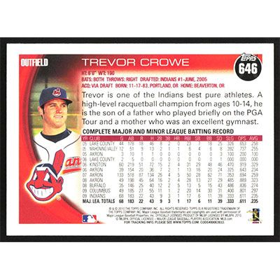 This is a 2010 Topps Trevor Crowe baseball card. The card is #646 and pictures show condition.