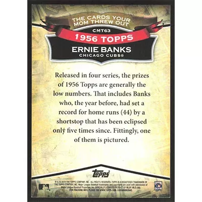 This is a 2010 Topps Cards Your Mom Threw Out 1956 Ernie Banks baseball card. The card is #CMT63 and pictures show condition.