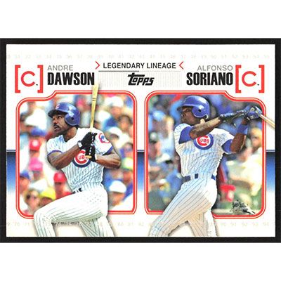 This is a 2010 Topps Legendary Lineage Andre Dawson and Alfonso Soriano baseball card. The card is #LL-36 and pictures show condition. Team(s): Chicago Cubs