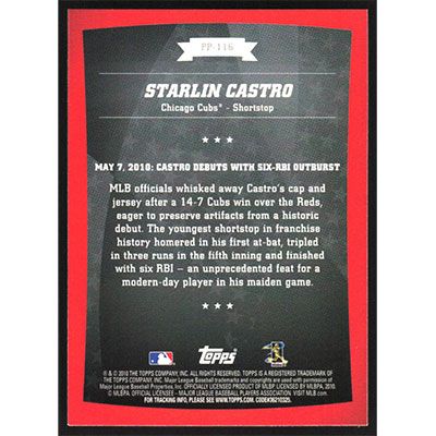 This is a 2010 Topps Peak Performance Starlin Castro baseball card. The card is #PP-116 and pictures show condition.