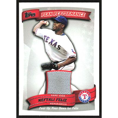 This is a 2010 Topps Peak Performance Relics Neftali Feliz Jersey baseball card. The card is #PPR-NF and pictures show condition.