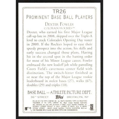 This is a 2010 Topps Turkey Red Dexter Fowler baseball card. The card is #TR26 and pictures show condition.