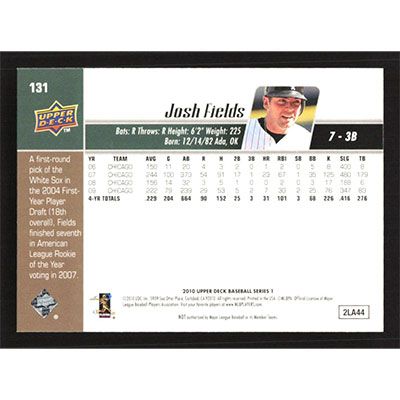This is a 2010 Upper Deck Josh Fields baseball card. The card is #131 and pictures show condition.
