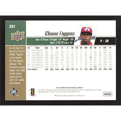 This is a 2010 Upper Deck Chone Figgins baseball card. The card is #257 and pictures show condition.