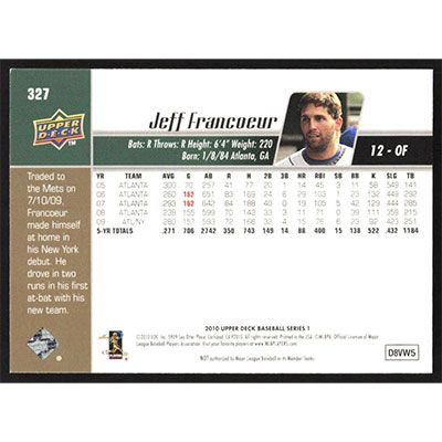 This is a 2010 Upper Deck Jeff Francoeur baseball card. The card is #327 and pictures show condition.