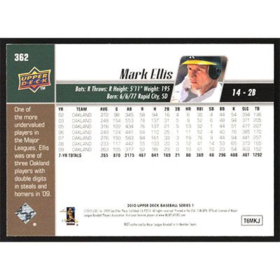 This is a 2010 Upper Deck Mark Ellis baseball card. The card is #362 and pictures show condition.